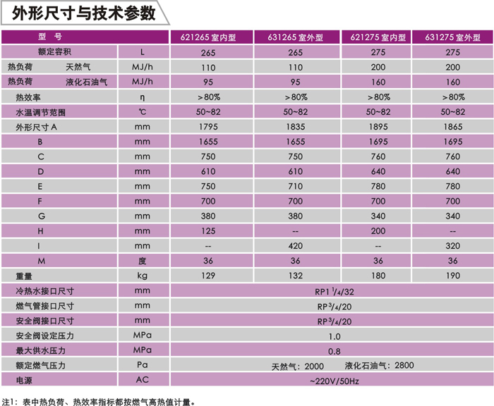 设备型号:631275商用标准型燃气热水器/CSFL320-608商用标准型电热水器